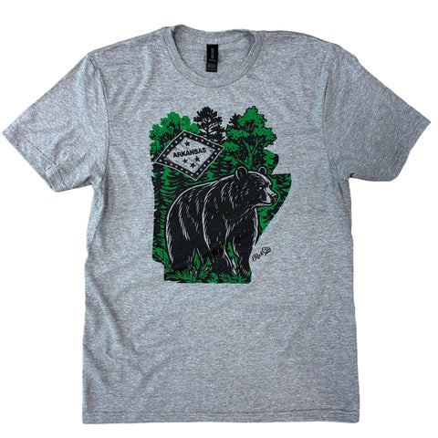 Inspired by the deep woods of the Natural State, this black bear design represents the quiet strength and wild beauty of Arkansas.